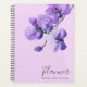 An elegant planner featuring a branch of violet orchid flowers on a lilac background. "Planner " (which is editable) is in modern calligraphy font. Personalize with your name and year.