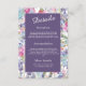 This wedding enclosure card comes in different sizes, shapes and papers. It is customizable with your reception, accomodation, details, monograms and other backgrounds. It shows a harmonious blend of floral colourful watercolor wildflowers and greenery. The minimal violet, lilac overlay is for your customization.