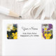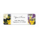 Étiquettes d'adresse de retour personnalisées avec script et lettre manuscrite et belle floraison violet, jaune et bleu violet et fleurs de sansy d'un tableau botanique vintage sur un arrière - plan violet. Customisez-le pour changer les polices, le dimensionnement, les couleurs arrière - plans et créer votre propre design personnalisé, même enregistrer votre design pour plus tard.