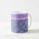 A stylish white coffee mug to personalize, with a pretty pattern of Violets, one of the February Birth Month Flowers, from a watercolour painting by Judy Adamson. Part of the Posh & Painterly 'Sweet Violets' collection.