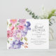 Invitation à la douche à la nuptiale florale avec de magnifiques violets violets et fleurs roses peints à la main. Retourner notre invitation pour voir un retour de coordination pour une touche spéciale.