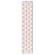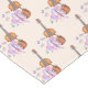 A patterned table runner with a soft feminine design. Illustrated with a watercolor image of a wooden violin, some pink ballet slippers resting against it and decorated with flowers and butterflies. Set on a peach pink coloured background.