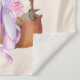 A tapestry with a soft feminine design. Illustrated with a watercolor image of a wooden violin, some pink ballet slippers resting against it and decorated with flowers and butterflies. Set on a peach pink coloured background.