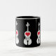 Designer Black, Red and White Violin Coffee Mug. Black Mug adorned with white violins and red hearts. Black inside. Nice gift for your violin teacher or musician friend.