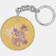 Violin Floral Swirl Gold Round 2-Sided Keychain