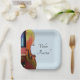 Violin music recital paper plate, with a vintage violin image on a blue background. With black typography lettering, you can customize with your own text. Perfect for celebrating after your special performance.