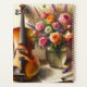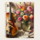 Carnet personnalisé. Aquarelle de l'art de l'air représentant un violon penché contre le mur, des partitions et un vase de fleurs en verre.