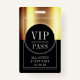 Template metallic gold and black VIP all access Event Badge. Replace with your own event name and date.Elegant luxe glam style.