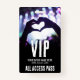 At the bottom, bold text highlights "VIP," the event name, date, and "All Access Pass." All text details and font colours can be customized. You can also replace the photo, though it may not fade to black as seamlessly at the bottom.