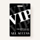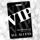 Perfect for fashion shows, concerts, conferences, speakers, or any special event, this VIP badge is designed to make guests feel important—including birthday parties. Both sides feature a sleek black background. The front showcases "VIP" in white, displayed diagonally with a dark grey shadow effect behind it, adding depth. To the right, the event name and date are positioned for a modern look, with "All Access" at the bottom. The back is also black and left blank.