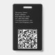 A minimalist modern design with elegant font for custom name and event information. Classic white font with your details on a chic black background. The name badge can be customized with your name, contact information and social media handles. The QR code can be customized to direct to your website.