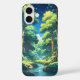 Viral anime nature wallpaper in , in the style of digital illustration inspired by Hayao Miyazaki, featuring a serene forest with towering ancient trees, dappled sunlight filtering through the leaves, a gentle stream flowing through the scene, and mystical creatures peeking from behind the foliage; vibrant and warm colour temperature, cosmos lighting with stars twinkling in the sky, no human characters, the atmosphere is tranquil and enchanting --v 5 --stylize 1000