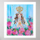 Our lady of El Valle, surrounded by beautiful tropical flowers and butterflies, painted with watercolors.
