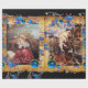 Colourful, magical atmosphere of the Christmas by German painter Matthias Grunewald ,Details from Second state of the Isenheim Altarpiece ,expressive and intense style of late medieval Central European art into the 16th century.Oil on wood. Elegant,classic, bright and merry Christmas design on parchment with antique Florentine floral motifs ,shiny 3D blue sapphire and red ruby gemstones .