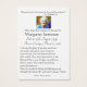 These cards are the perfect size to distribute at funerals. Has an entire poem at the back. The price was reasonable for 100 cards and they were delivered promptly. I am very satisfied with this product and will purchase all of my paper products from Zazzle. Printing is perfect. The back of the card has a poem and a verse that is easy to read. Very happy with this product