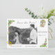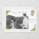Design front features the photo you provide as main image with date displayed below in two ways. A beautiful image of Our Lady of Fatima appears at top right and is bordered by the image of delicate pink and white roses. The picture of golden wedding rings joined together is displayed at bottom left corner of photo. Customizable heading is featured in an elegant Nuptial font at top. Bordering the top left and bottom right corners are the images of roses and greenery. Names of Bride & Groom are displayed just below photo in same Nuptial font. Keeping with the traditional format for a Save the Date card, name of city and state of wedding also appear at bottom.