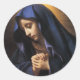 This is a gorgeous Italian depiction of the Madonna. The Virgin wears a dark blue robe and her hands are held together in prayer. A stunning Virgin Mary sticker.