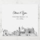 Étiquette de champagne personnalisé pour le mariage de Virginia Beach moderne. La conception présente un croquis étonnant avec la possibilité de customiser vos noms et l'emplacement exact. Entrez l'outil de conception Zazzle pour des personnalisations supplémentaires.