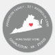 État unique de VIRGINIE Nouveau auto-collant étiquette de adresse sur un arrière - plan gris avec un coeur rouge et un avion.