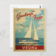 This Greetings From Virginia vintage travel nautical design features a boat sailing on the water with seagulls and a blue sky filled with gorgeous puffy white clouds.