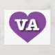 This postcard features a vibrant purple heart containing the bold, white, upper case letters VA, the official abbreviation for Virginia, the old dominion state. The reverse side of the postcard is blank, awaiting your handwritten sentiments or customized text.