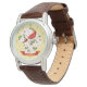 I like the illustrative watch with the lady on it. It is a great reminder that I am blessed and it has a very sturdy leather band. The colors are true and vibrant. Love the color of the Leather also. Very nice.