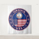 Badge of Virginia State with flag of Virginia and flag of USA colours, rounded shape.