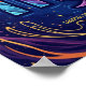 Eye-catching and colourful Virgo Astrology poster with sign and symbol surrounded in shades of blue and purple, along with yellow and coral. Poster also lists birth dates for Virgo and traits of Logical, Patient, and Reliable.