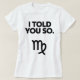 This sassy and confident design features the Virgo zodiac sign and the phrase "I Told You So." Perfect for Virgos who love to prove they were right, this tee is a humourous way to express your superior knowledge and foresight.