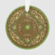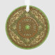 This Virgo themed mandala depicts a peridot stone surrounded by the symbol for the sign, the constellation, and the alchemical symbol for Earth among filigree and weaves.