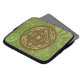 This Virgo themed mandala features a peridot stone surrounded by the symbol for the sign, the constellation, and the alchemical symbol for Earth among filigree and weaves.