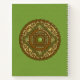 This mandala was designed for the zodiac sign, Virgo, depicting a peridot stone in the centre surrounded by elements representing the sign, such as the symbol for the sign, the constellation, and the alchemical symbol for Earth, as well as filigree vines and weaves wrapping it all into a solid image in shades of light green, copper, and brown.