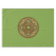 This Virgo themed mandala depicts a peridot stone surrounded by the symbol for the sign, the constellation, and the alchemical symbol for Earth among filigree and weaves.