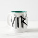 Mug features the word “Virgo” in primal text style. Behind the black text is the Virgo symbol in grayscale. Mug’s interior colour is customizable. Great gift for people born between August 24th and September 23rd.
