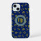 Virgo Zodiac+Astrology Symbols Pattern Gold+Blues iPhone 15 Case