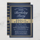 Virtual Any Birthday Navy Blue Gold & White Party Invitation