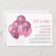 Célébrez la future mère à distance avec un baby shower virtuel en ligne. Cette mignonne invitation à la douche pour bébé simple comprend un tas de ballons roses brillants avec parties scintillant et d'autres embellissements et "It's a Girl!" et le nom de la mère dans une typographie rose de coordination moderne minimale. Vous pouvez facilement personnaliser avec les détails de la douche virtuelle, y compris le lien d'accès en ligne, les informations de registre, où envoyer des cartes et des cadeaux et un contact pour plus d'informations.