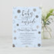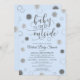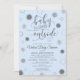 Virtual Online Baby Shower invitation with a silver glitter BABY ITS COVID OUTSIDE script typography design and corona viruses representing snowflakes on an editable blue background. Contact the designer via Zazzle Chat or makeitaboutyoustore@gmail.com if you'd like this design modified, on another product or would like coordinating items.