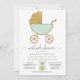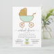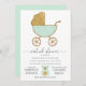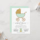 Virtual Baby Shower Retro Carriage Glitter Mint Invitation