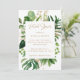 Modern botanical virtual baby shower invitation with your details inside of a geometric frame surrounded by watercolor painted tropical greenery and faux gold leaves. The backside is a matching gold tone. This elegant invitation is great for a virtual baby shower when you can't get together in person.