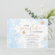 Virtual boy baby shower blue gold little snowflake invitation