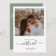Rustic minimalistic design features modern script , botanical floral leaf with photo, and sage green on back of card. Easily personalize your information of choice. Ideal simple wedding invitation for a virtual online wedding.