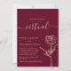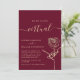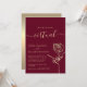 Simple, modern, elegant burgundy virtual wedding invitation with gold foil rose flower and simple calligraphy script.