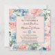 This beautiful square floral botanical virtual wedding invitations set is the perfect way to invite everyone to your wedding! Watercolor pink and dusty blue flowers frame this gorgeous wedding invitation.