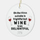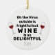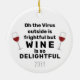 Show some humour during the holidays with this Virus Outside is Frightful Funny Christmas Pun Ceramic Ornament. It is a typography design on both sides with bold black lettering on white background. Two small wine glasses are on each side of text. The funny pun is "oh the virus outside is frightful but wine is so delightful" followed by customized year. Click personalize option and enter year.