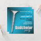 carré bleu cool #dadchelor invitations avec une grosse vis grise. "Rejoignez-nous pour un peu de plaisir masculin comme (papa à être) attend le bébé #1".