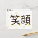 Une carte postale mignonne avec le mot japonais pour le visage souriant. Le verso de la carte indique comment vous dites le mot et le sens.