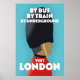 By Bus, By Train, By underground - Visit London vintage style travel poster art print.