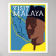 Vintage Art Deco illustration style travel poster for Malaya, part of present day Malaysia. Vintage travel posters give us a nostalgic look back on the idealized style, fashion, transportation and favored destinations of the past.