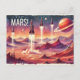 Here’s the vintage travel postcard featuring Mars with stylized rockets launching into the sky. 🚀🔴✨ The landscape is red and rocky with jagged peaks and sand dunes, while the sky has a gradient of orange and purple with distant stars. The sleek, futuristic rockets leave glowing trails. The bold, retro-style typography reads "Visit Mars!", creating a nostalgic, space-travel vibe.